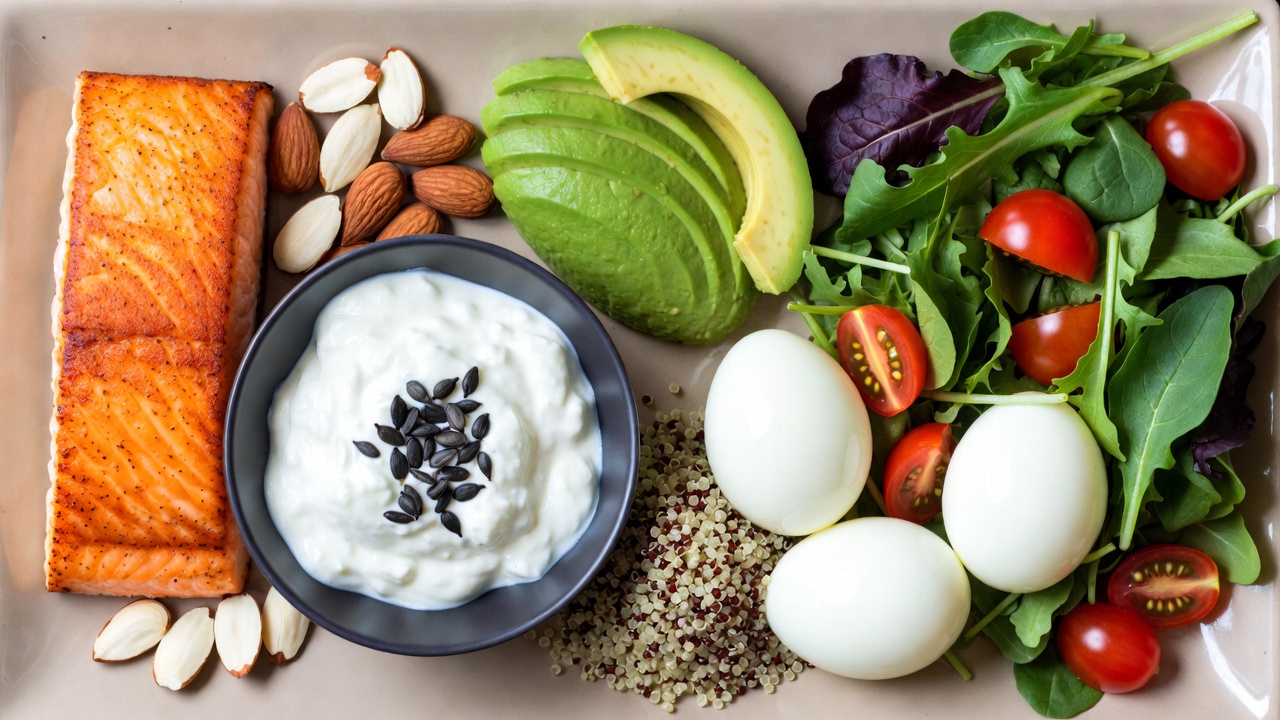 - plnotučné mléčné výrobky (např. řecký jogurt, sýry, mléko): obsahují protein, vápník a zdravé tuky. Šálek plnotučného řeckého jogurtu má přes 150 kalorií a 15–20 g proteinů.