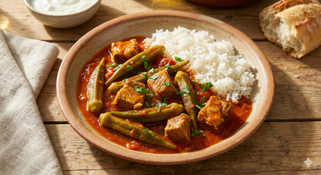 Tady je klasický tradiční balkánský recept na okru s masem (nejčastěji bosenský/srbský/chorvatský styl – dušené maso s okrou). Je to jednoduché, pomalé dušení, aby maso změklo a okra pustila tu správnou slizovitou omáčku, která zahustí jídlo.